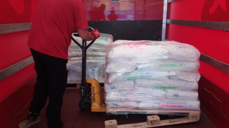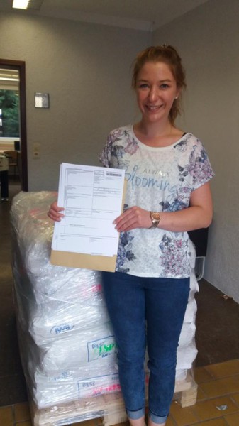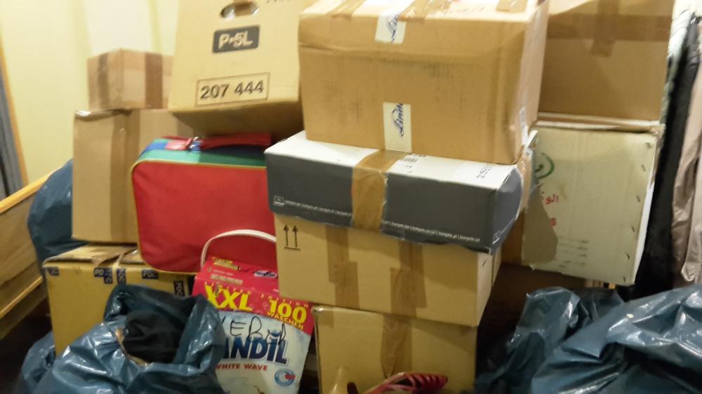 Die von unserer Partnerorganisation VIOLET dringend gebrauchten Güter (Milchpulver, Wasserreinigungsanlage) machen sich auf den Weg zu einem Kinderheim in der Nähe von Aleppo, Syrien.