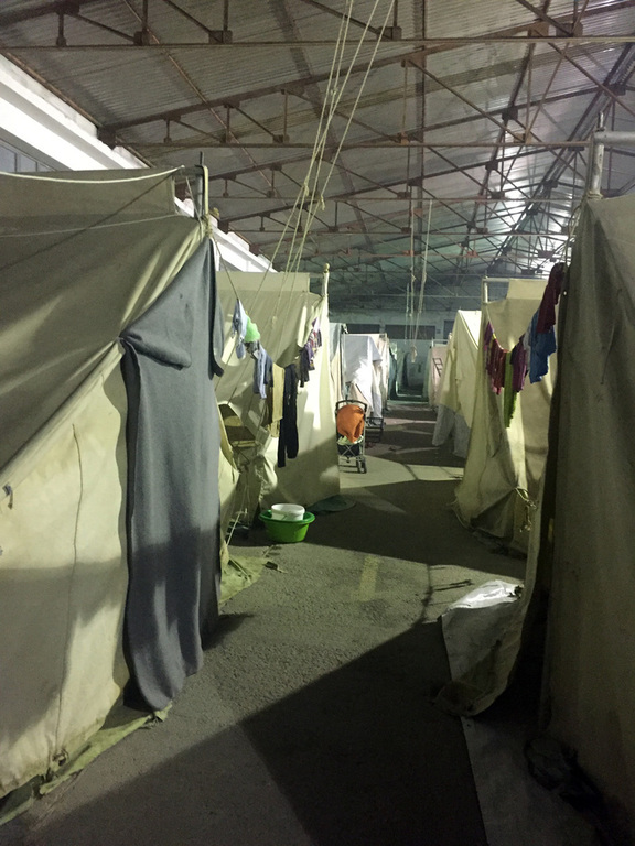 Vor der Lagerhalle saßen mehrere Leute. Einer der Männer schnitt einem anderen gerade die Haare. Es schien als hätten sich die Menschen mit der Situation irgendwie arrangiert. Der Eindruck wurde mir