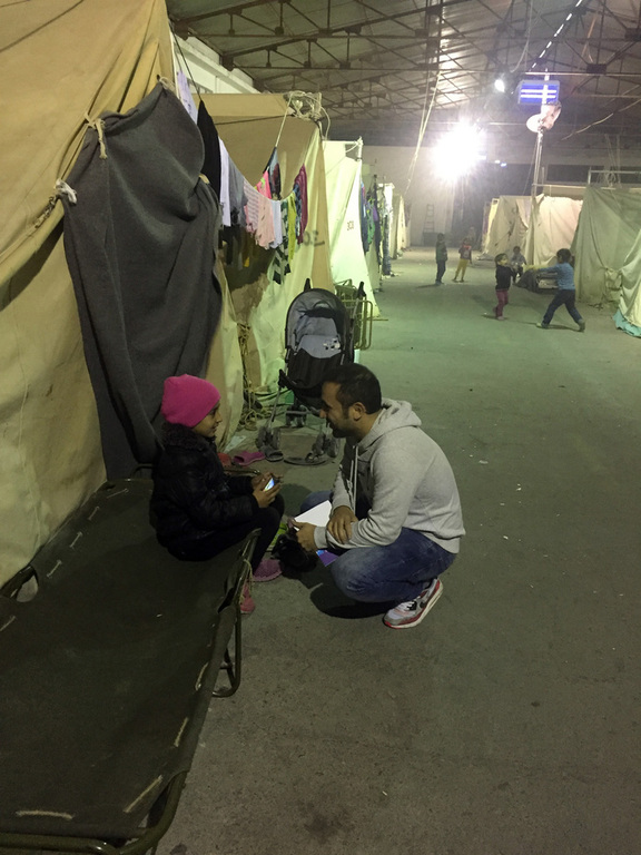 Schön zu sehen war wie ein Soldat, der vor den Containern mit 3-4 Flüchtlinge saß, in ein anscheinend normales Gespräch mit ihnen verwickelt war. Ein jüngerer Flüchtlinge, ich nehme an so um die 12